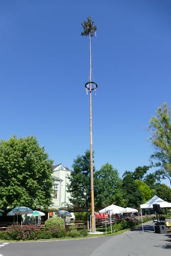Bei schönem frühsommerlichen Wetter gelang die Aufstellung per Manneskraft.
