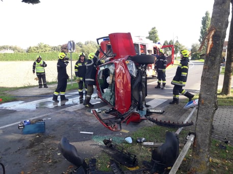 Die Feuerwehren Vogau und Obervogau holten die schwer verletzte Person, in Zusammenarbeit mit dem Roten Kreuz, mittels Befreiung durch hydraulisches Bergegerät aus dem Fahrzeug.