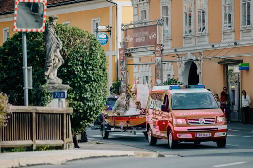 Die Kameradinnen und Kameraden der Freiwilligen Feuerwehr Obervogau gratulieren ihrem OBI Martin Gluschitsch zur Eheschließung mit seiner Laura Nebel.