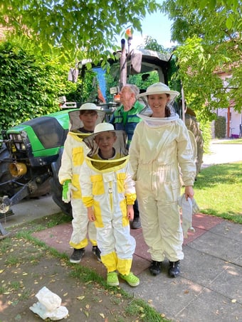 Nachdem der Kübel mit dem Schwarm bis am Abend stehen blieb, um die restlichen Bienen anzulocken, wurde er zu einem Imker gebracht.