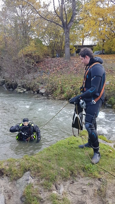 Als Teil der Tauchstaffel Leibnitz erfolgte um 7 Uhr eine Alarmierung zur Unterstützung bei einer Personensuche in Feldbach. Am gestrigen Mittwoch hatten mehrere Jugendliche im Alter zwischen 8 und 10 Jahren angegeben, dass ein Mann Nahe des Bahnhofes Feldbach in die Raab gestürzt war. Am Uferrand wurden auch ein Zelt und Kleidungsstücke gefunden, womit die Vermutung auf eine Obdachlose Person gegeben war.