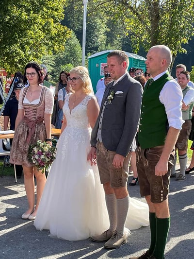 Da unter den Corona-Auflagen im Jahr 2020 keine ordentliche Hochzeit möglich war, wurde am 10.Oktober 2020 erstmals standesamtlich geheiratet. Nun fand am 10.Juni diesen Jahres die kirchliche Trauung in der Basilika Mondsee statt.