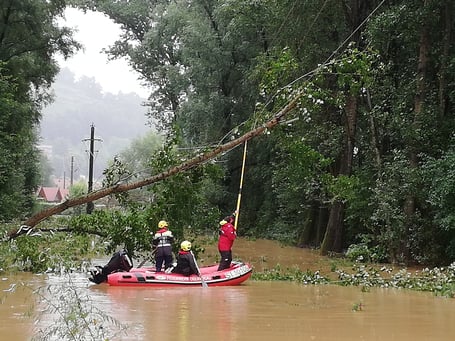 Danach wurde vom Boot aus, ein in Heimschuh auf einer Stromleitung liegender, umgefallener Baum zusammengeschnitten, um die Stromversorgung