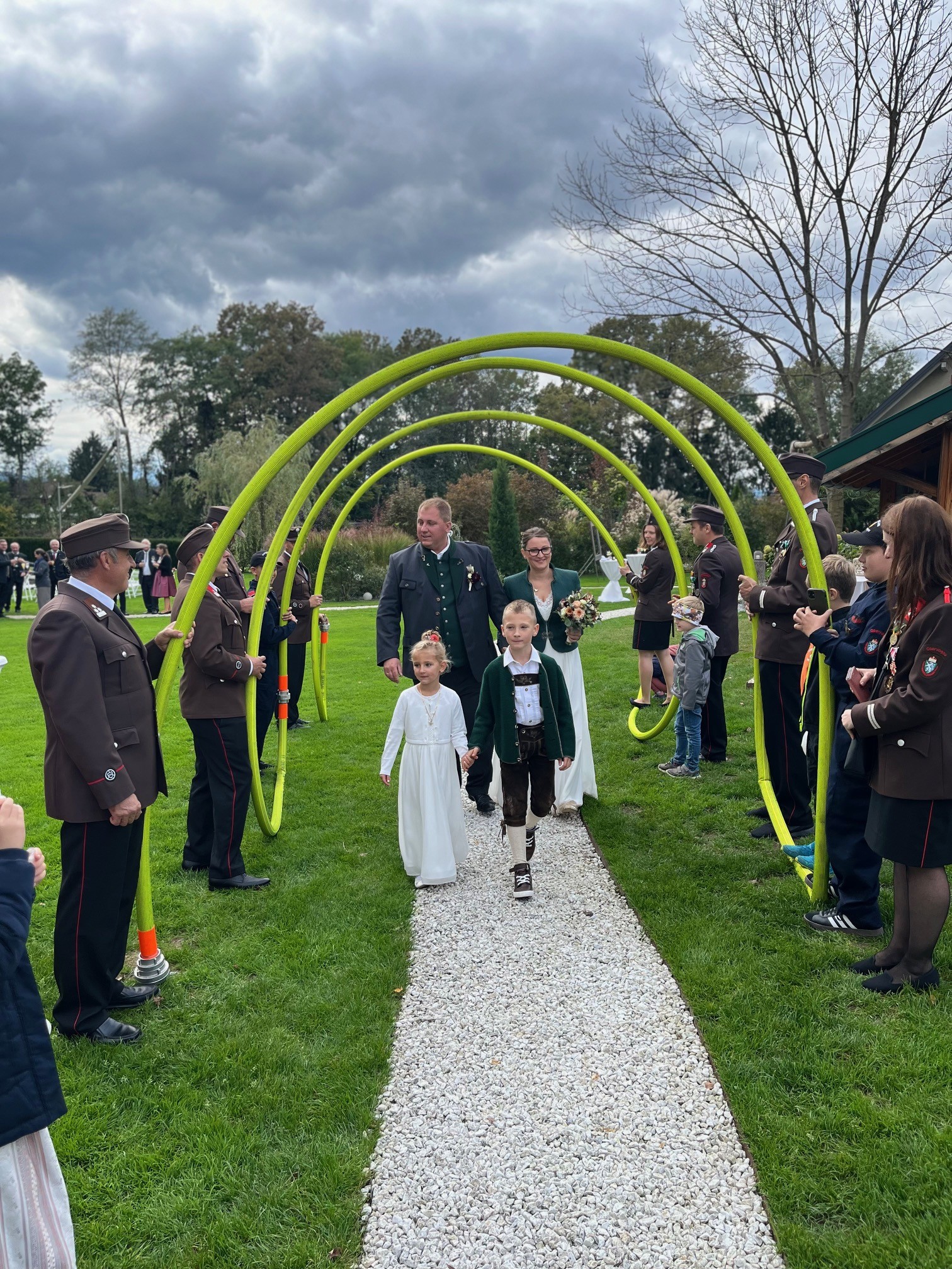 Gemeinsam mit der Feuerwehr St.Johann/S. wurde das Brautpaar vor der Kirche St.Johann/S. mit einem Schlauchspalier empfangen.