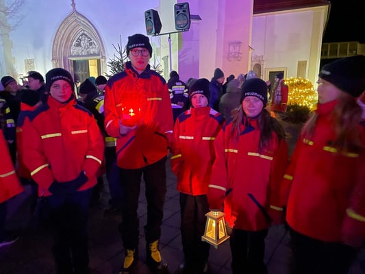 weit. Die jugendlichen der Freiwilligen Feuerwehr Obervogau holten in Begleitung das Friedenslicht von Bethlehem in Leibnitz ab. Am nächsten Tag wurde es von 9 Uhr bis