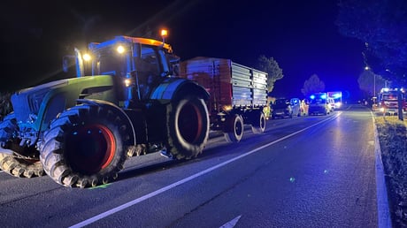 Ein Traktor mit Hänger war auf die B67 eingebogen, ein dahinter auf der Reichsstraße kommender Motorradfahrer kam bei der Bremsung zu Sturz und wurde schwer verletzt.